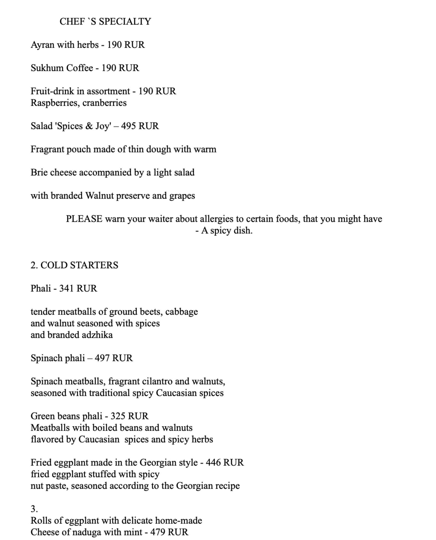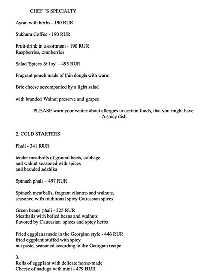 Перевод меню для кафе и ресторанов