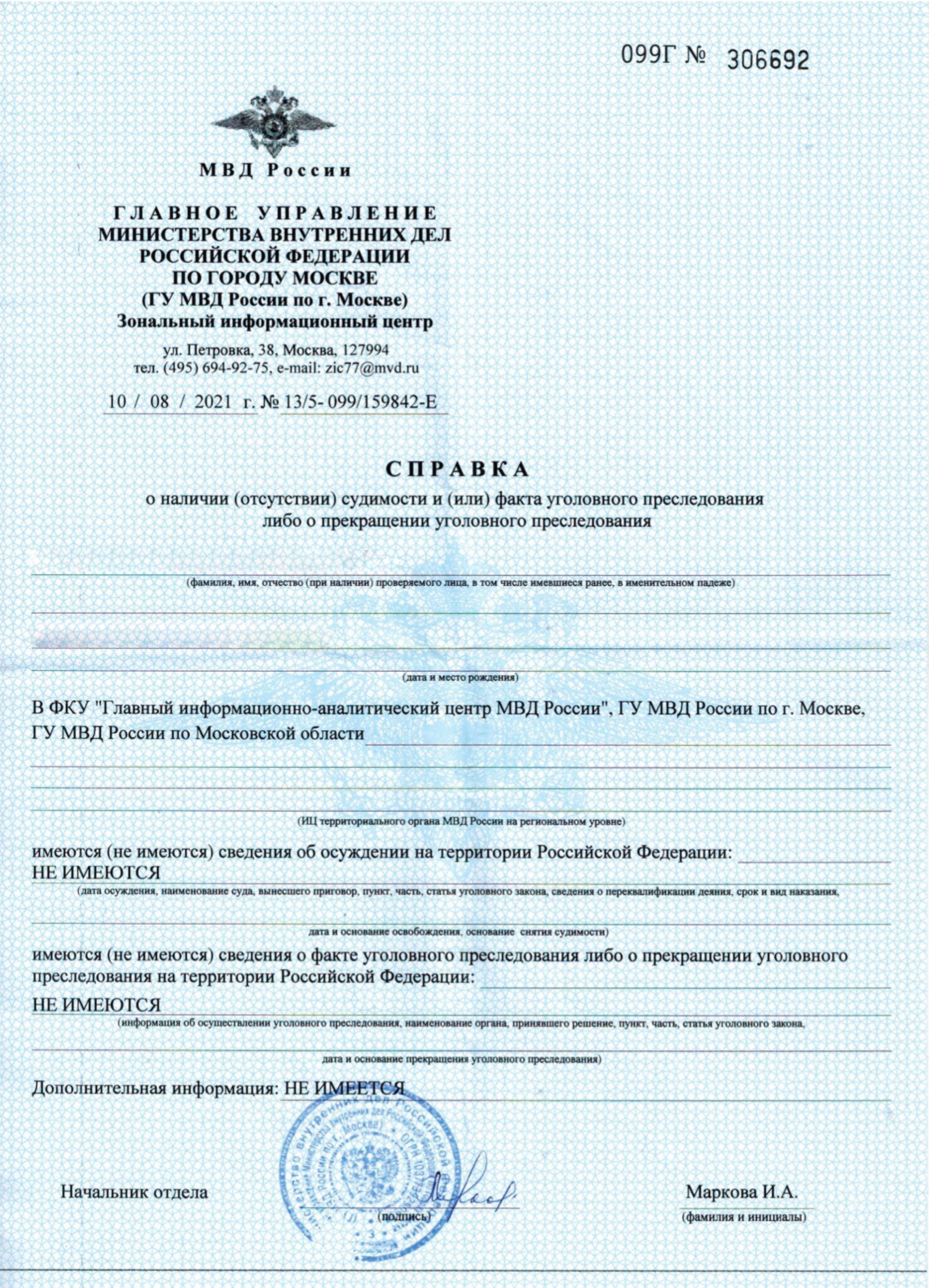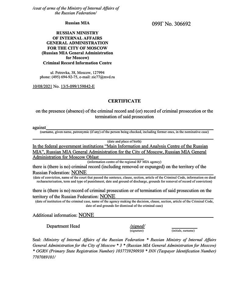 - справки о несудимости;